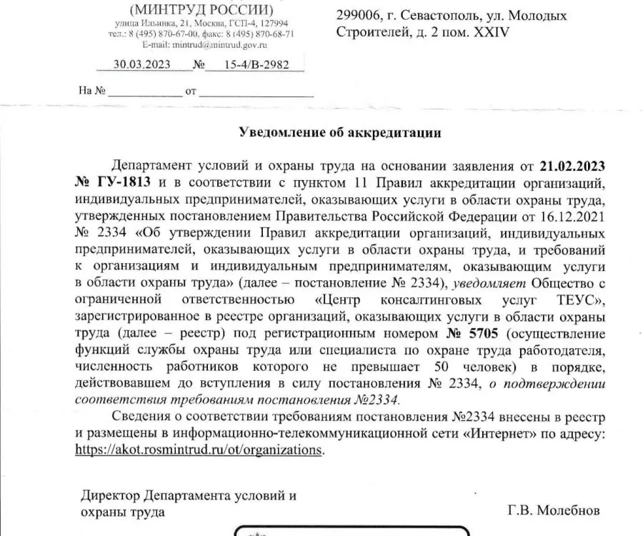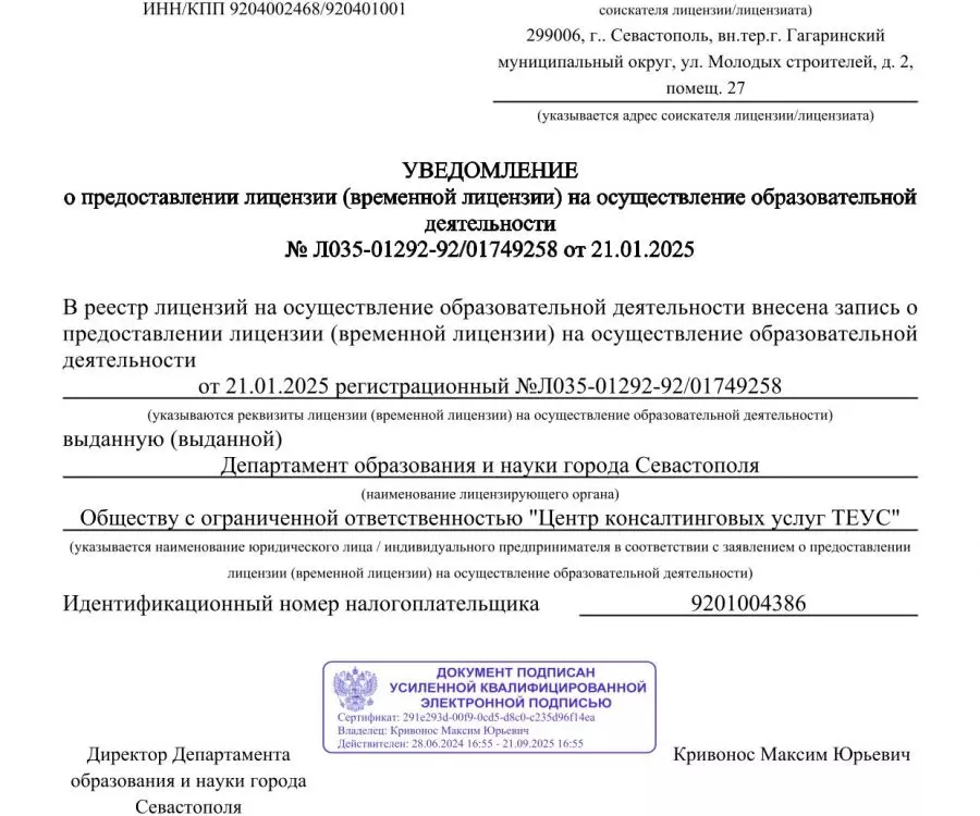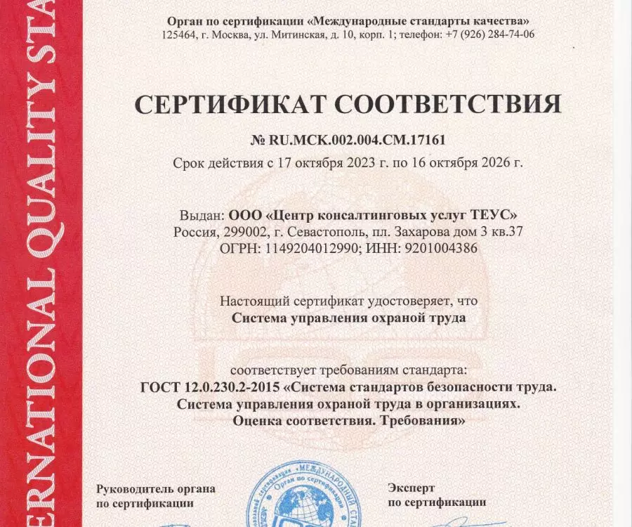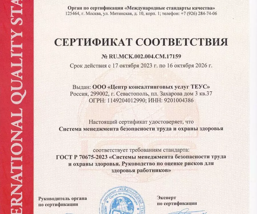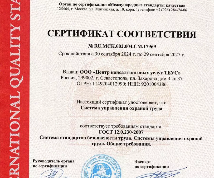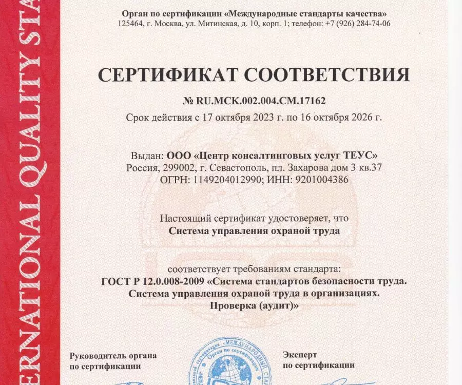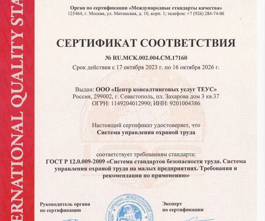 ООО "ЦКУ ТЕУС" - аккредитованный центр услуг по технике безопасности, обучение и аттестация в Севастополе (Крым). Работаем согласно требованиям и законам РФ. Консультации, ответы на вопросы с 09:00 до 18:00 ☎ 8(978) 709-95-60